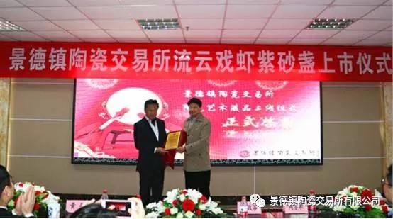 景德鎮(zhèn)陶瓷交易所董事何政谷為上海龍英藝術(shù)品投資有限公司頒發(fā)了藏品證書(shū)