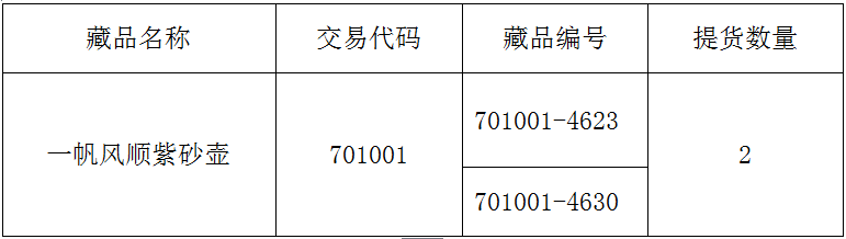 應(yīng)投資人會員申請,經(jīng)本交易所對申請人信息核實以及出庫藏品復(fù)驗后,提貨藏品已完成發(fā)貨,提醒廣大投資者注意盤面藏品數(shù)量變化。提貨藏品信息如下:
